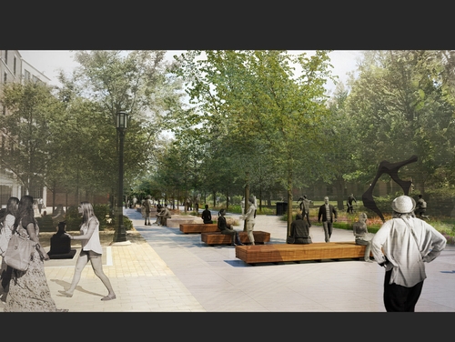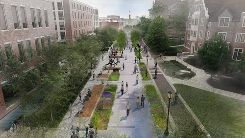 The project encompasses approximately 2.5 acres and connects Purdue’s western, student centered housing district with the eastern, historic core of the academic campus - from Jischke Drive to Centennial Mall. The design vision incorporates numerous plazas of varying scales to foster a vibrant academic community. When completed, the project’s conversion will serve as the first westward promenade emanating from the University’s campus core.